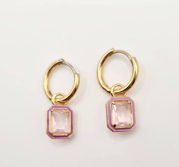 Deze hanger heeft een prachtige heldere roze steen afgewerkt met een lila randje. Ze zijn 18k gold plated.