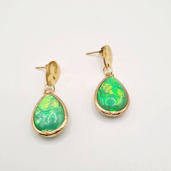 Deze oorbellen blijven je verrassen. Afhankelijk van de lichtval geven ze een andere kleur met als hoofdkleur groen.