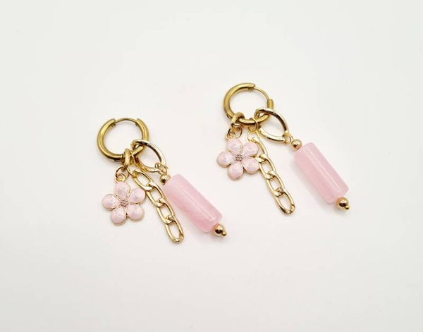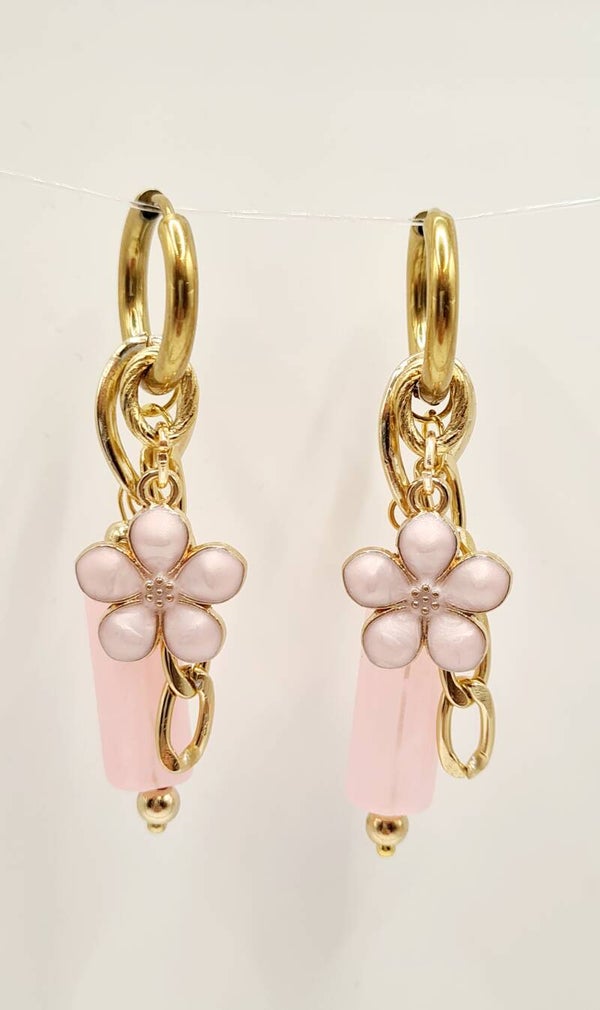 Prachtige roze oorbellen. Mooi te combineren met een sjieke outfit of juist op een jeans outfit. Je kunt de bedeltjes combineren. Zo heb je wel 3 paar oorbellen voor 1 prijs.