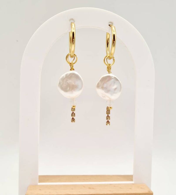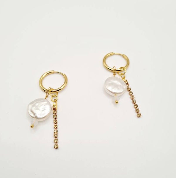 Pearly oorbellen , parel oorbellen.met gouden strass steentjes