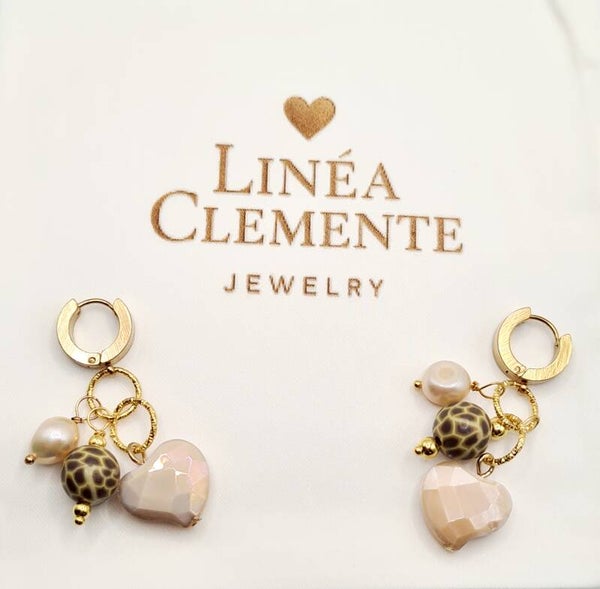 Deze juweeltjes hebben een zachte kleur roze met een catcher, dat is de tijgerkraal. Hiermee krijgt deze oorbel een krachtige uitstraling.