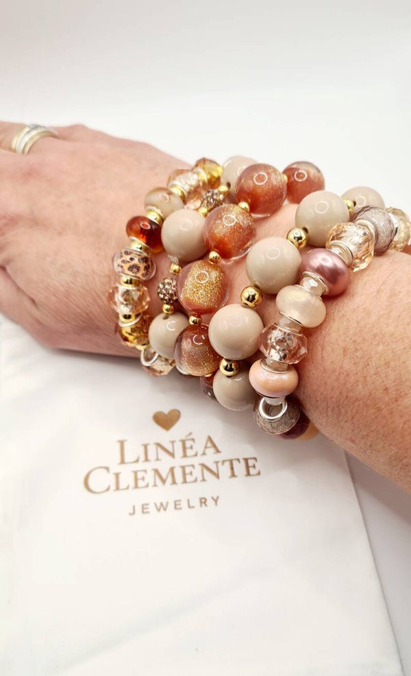 Laat je meevoeren door de warme, natuurlijke uitstraling van deze prachtige armband in zachte aardetinten, afgewerkt met een opvallende tijgerkraal als stijlvol middelpunt. De harmonieuze kleuren doen denken aan rust, natuur en innerlijke kracht – perfect voor wie houdt van een subtiele, maar betekenisvolle look.