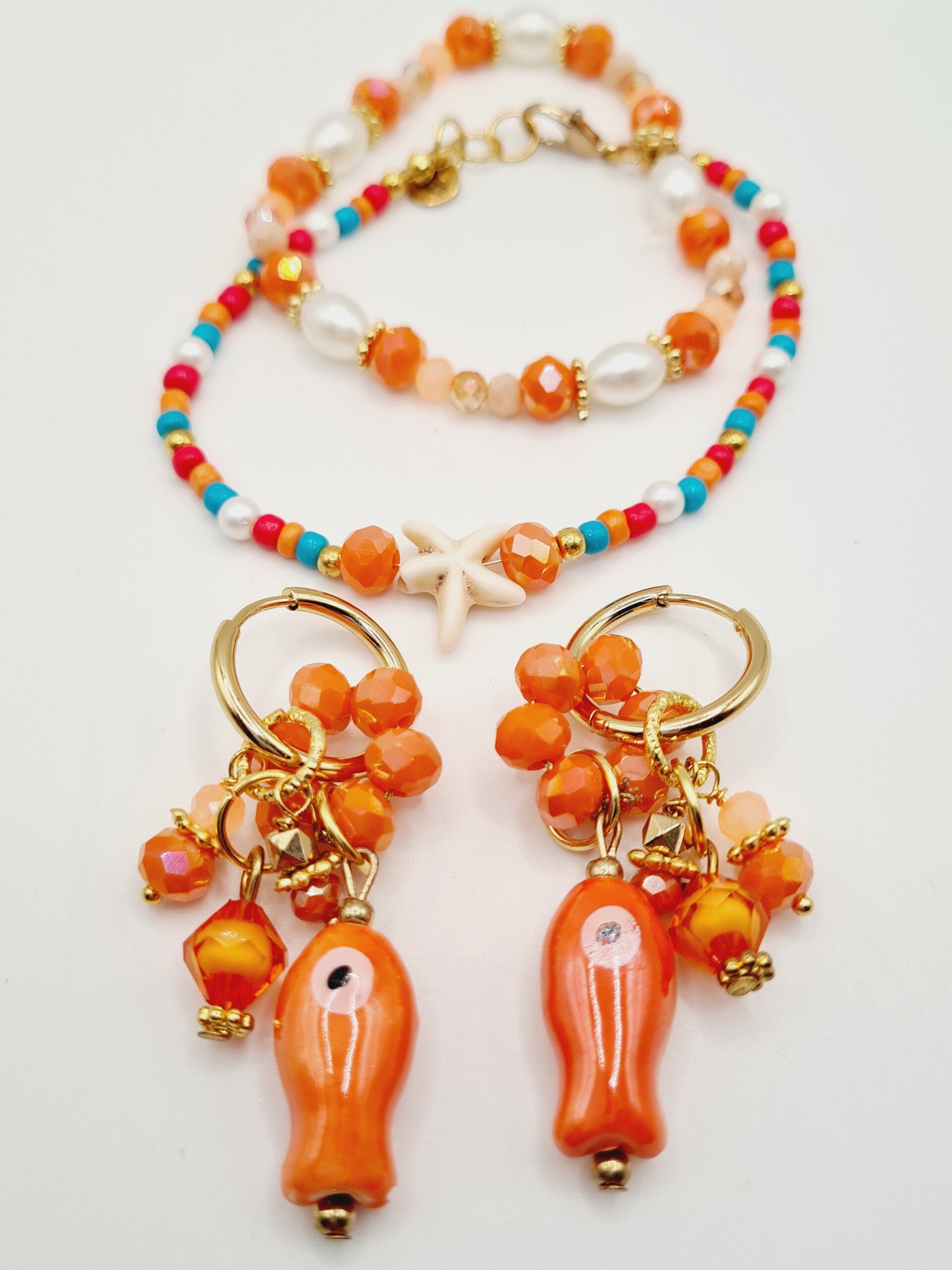Orange fish gouden oorbellen