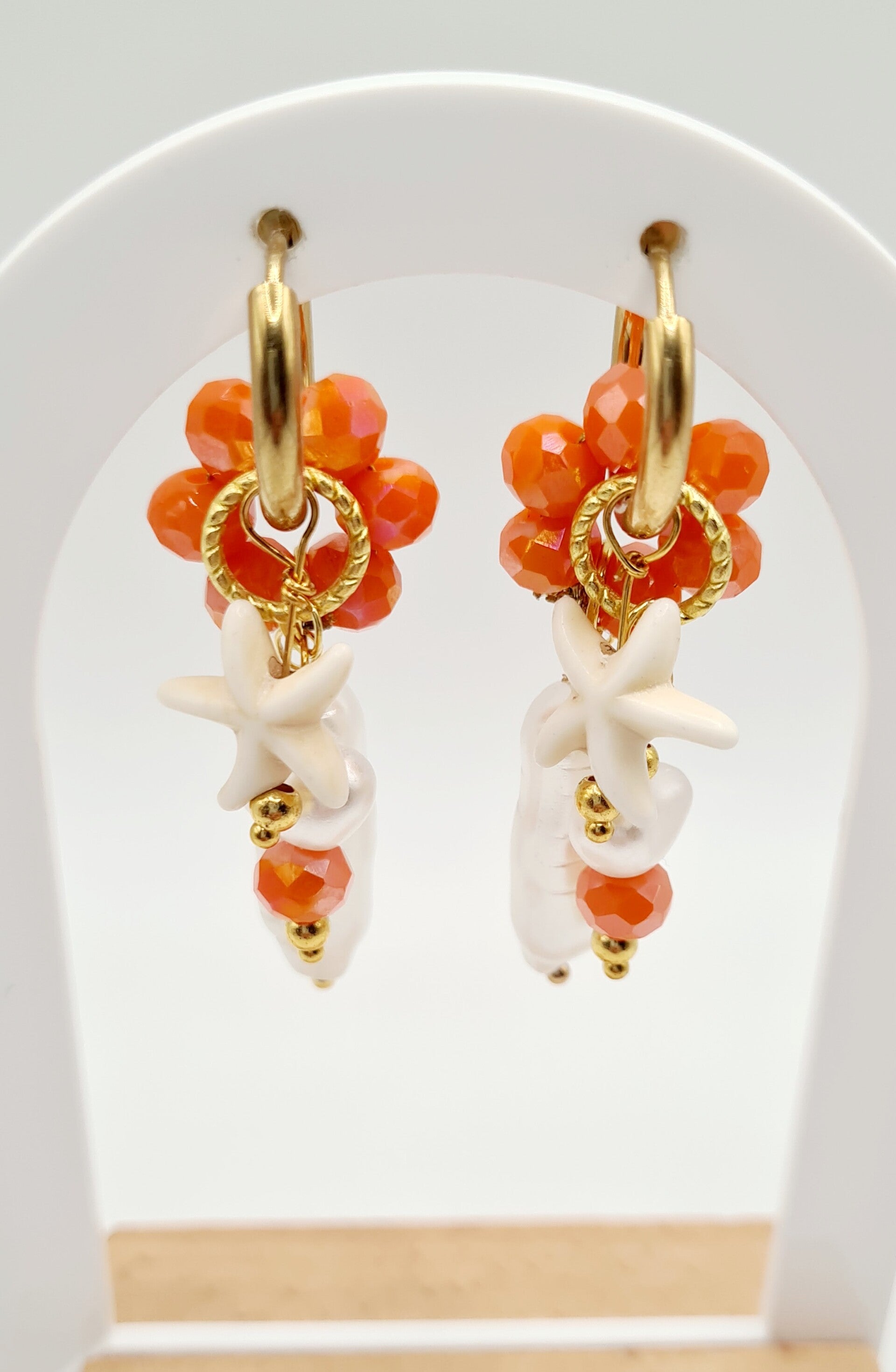 Orange pearl gouden oorbellen