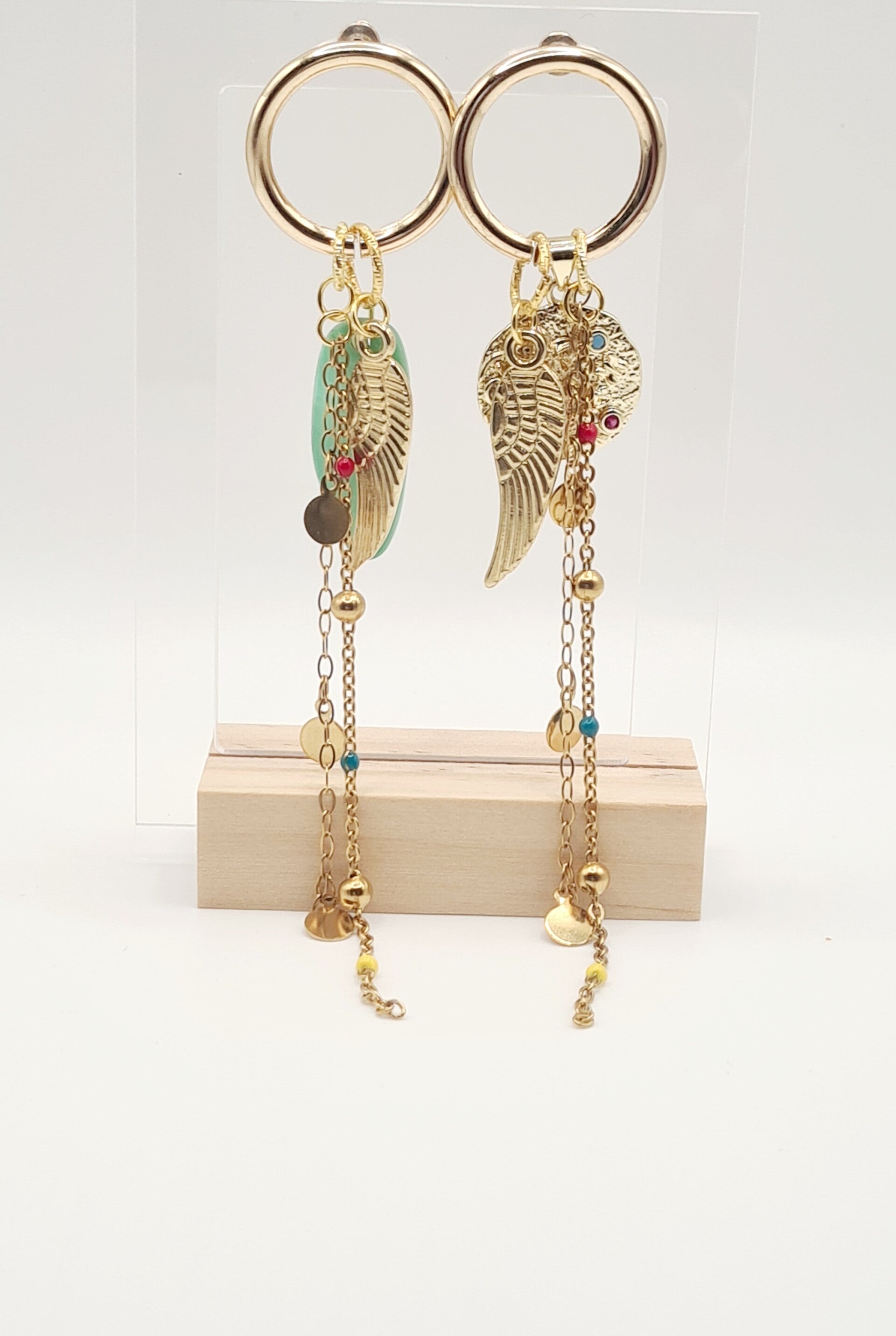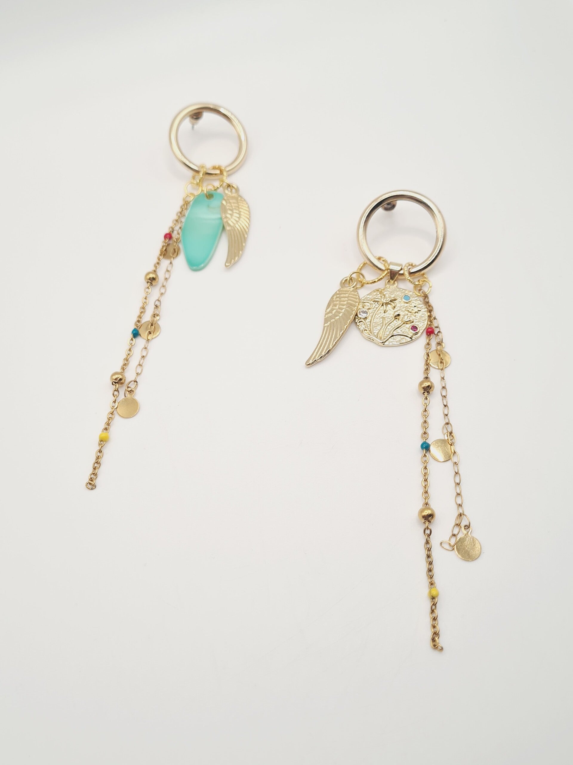 Festival lange oorbel A-symetrisch goud aqua