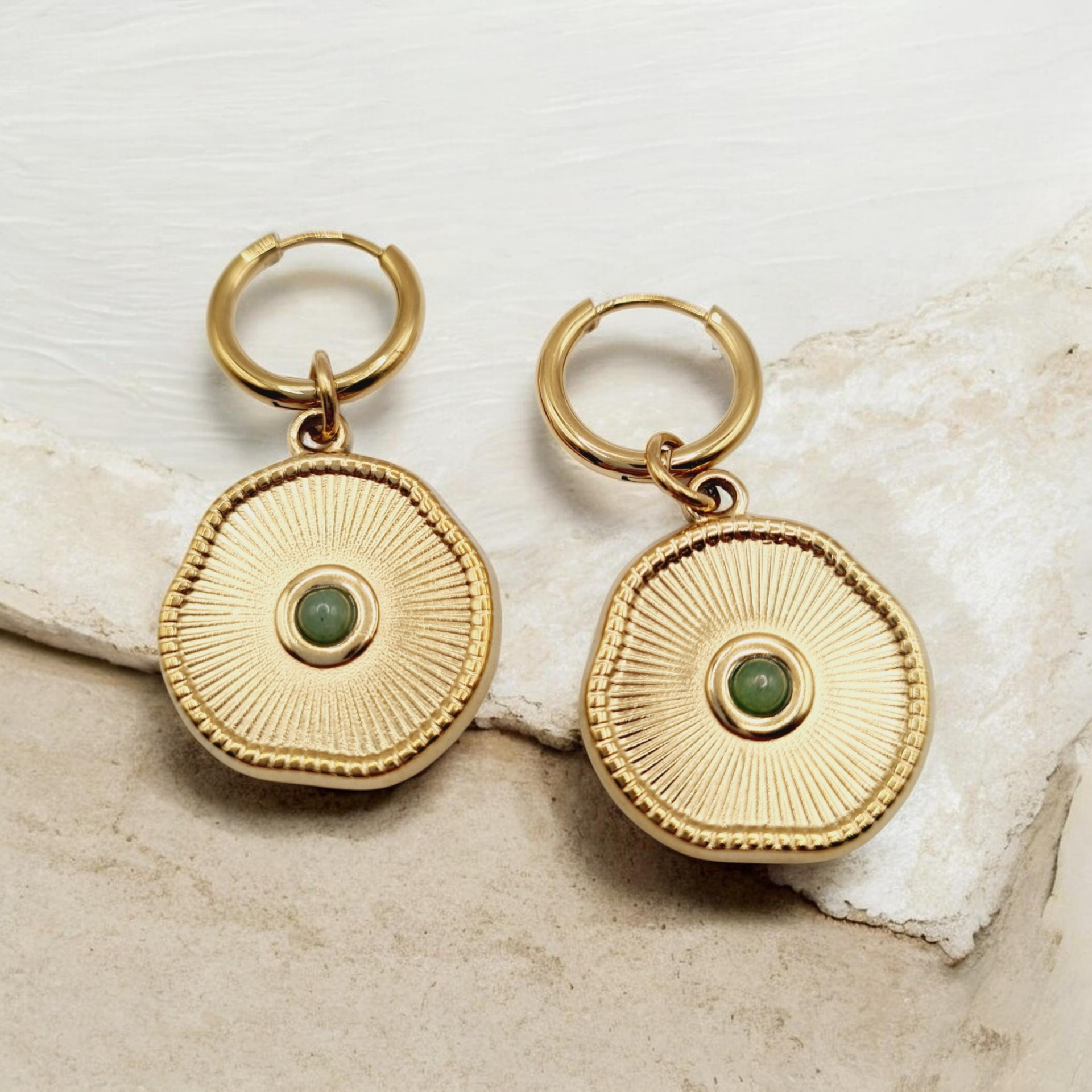 Stainless steel Aventurijn gouden oorbellen Boho