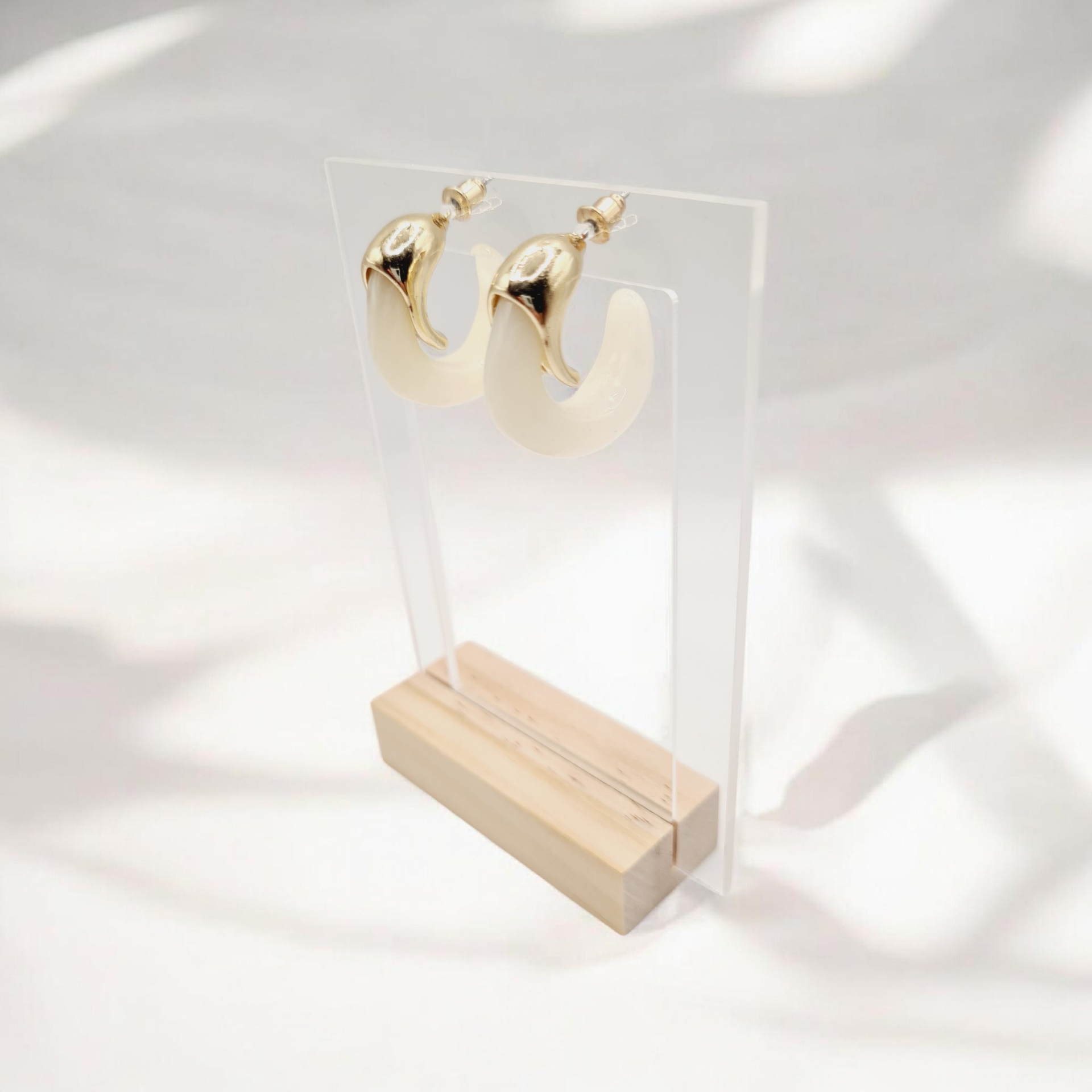 Deze stijlvolle stekers zijn prachtig te combineren met andere off white en gouden sieraden.